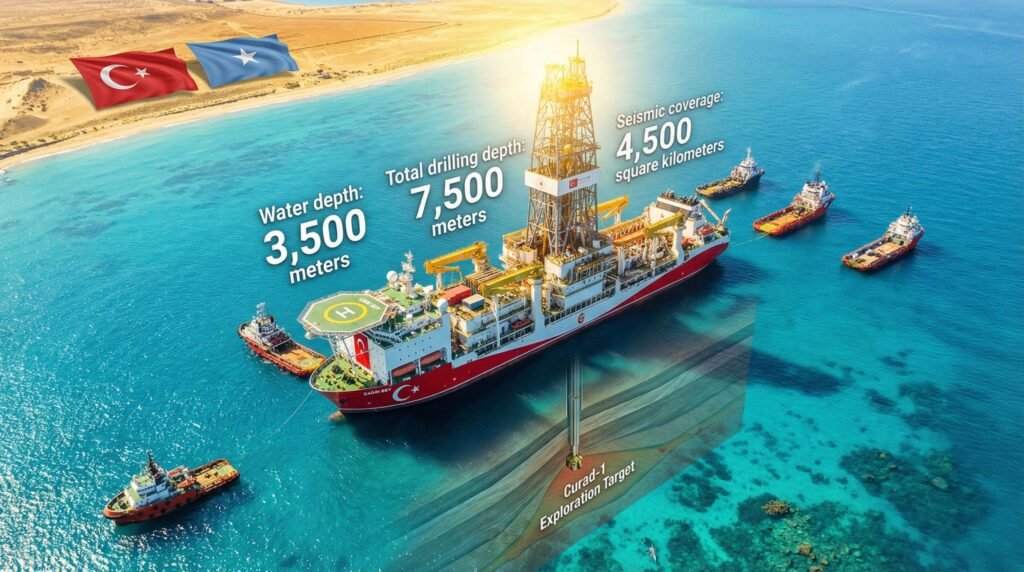 The Çağrı Bey drillship has entered Somali waters, operating at a depth of 3,500 meters approximately 370 kilometers from Mogadishu. This represents Türkiye’s first significant presence in the Indian Ocean basin, moving beyond its traditional Eastern Mediterranean and Black Sea focus.